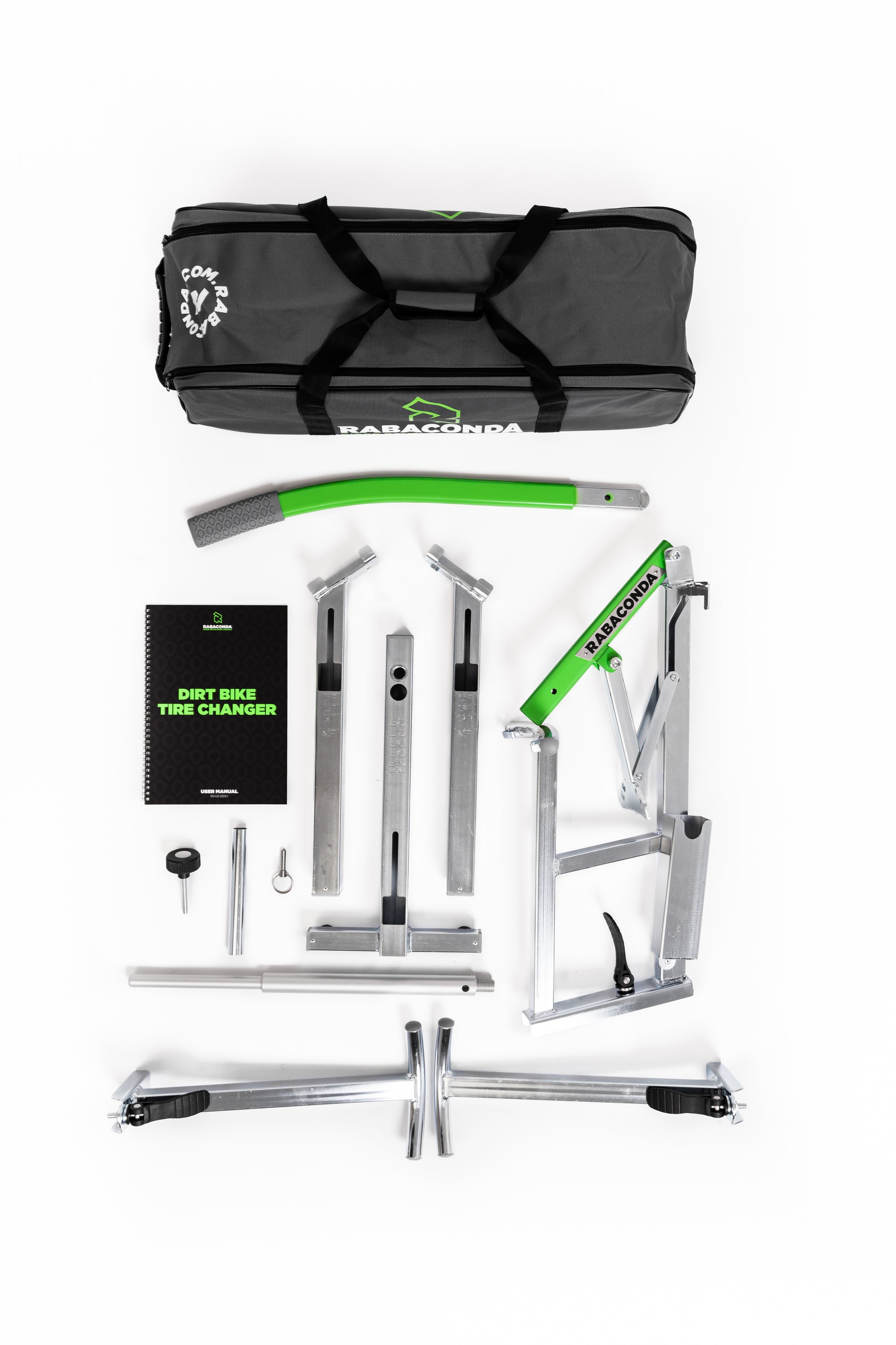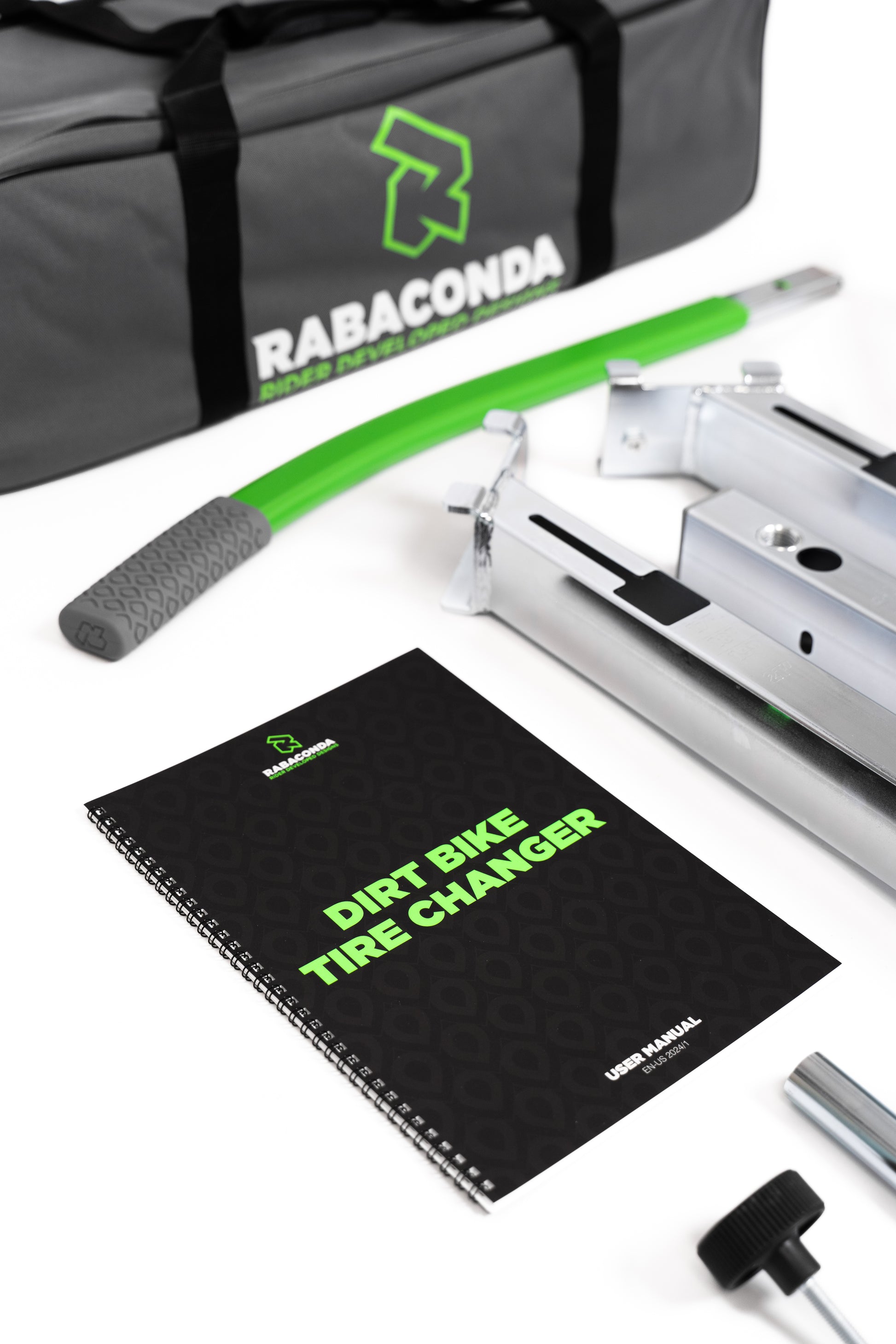 Are bloody knuckles, stress, and back and knee pain supposed to be part of the tire changing experience? It may seem that way. That is until you use a Rabaconda. The Rabaconda tire changer makes changing tires in under 3 minutes a reality for professional and home mechanics alike. Rabaconda Dirt Bike Tire Changer (previously known as the 3 Minute Tire Changer) is a result of passion, mixed with many years of intens e research and development.